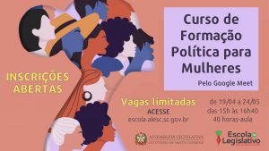 O curso propõe o aprimoramento de conhecimentos e  a preparação das mulheres para a participação na política  em todos os espaços da sociedade. No formato on line o curso vai acontecer no período de 19 de abril a 23 de maio e compreende 05 módulos com os seguintes temas: